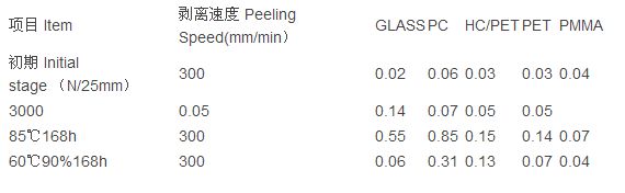 ●在玻璃、PC、PMMA、HC/PET等表面不會殘膠No glue residue on the surfaces of glass, PC, PMMA, HC/PET, etc.