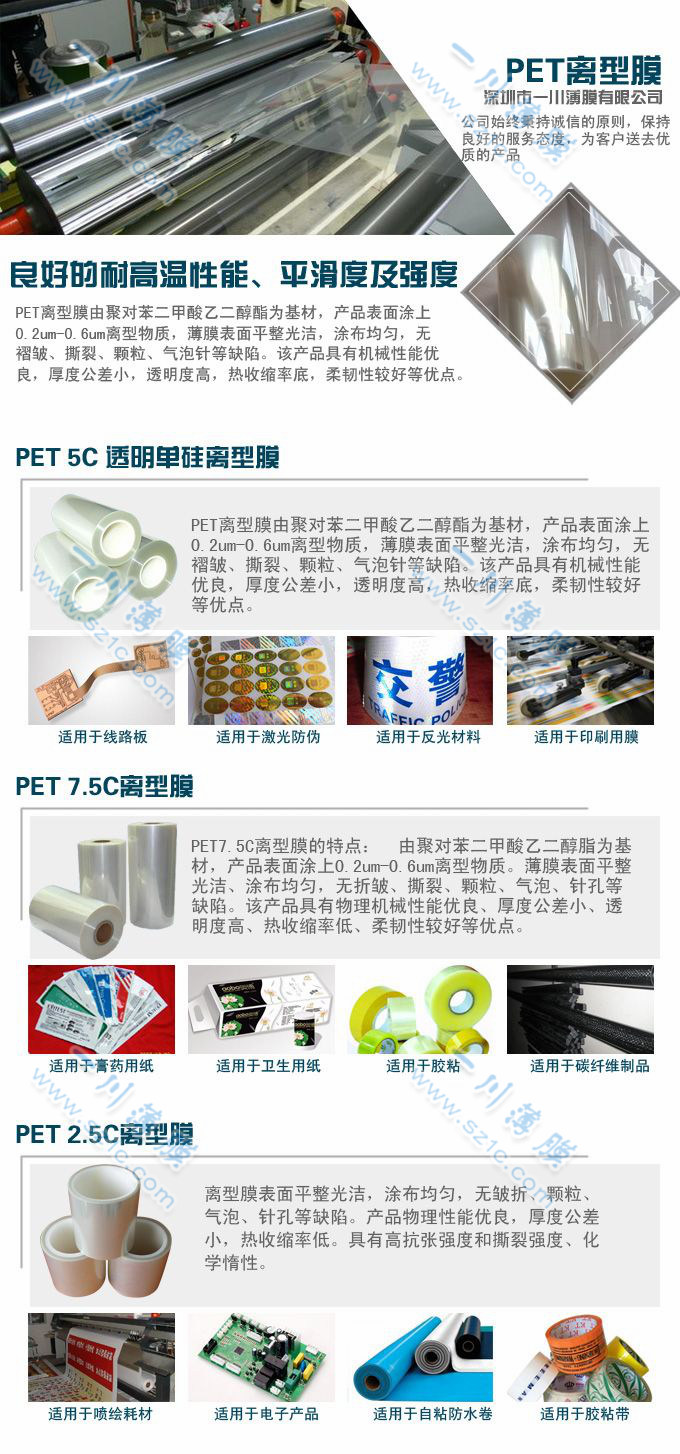 1)沒有遷移現(xiàn)象.消除了硅樹脂離型膜轉(zhuǎn)移到其所緊貼的材料上去的危險